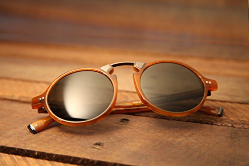 The soho collection V605 is a next level frame that fuses immaculate materials and elevated design. It boasts a classic round shape upgraded with a sleek, brushed gunmetal top bar, custom rivet hinges, polarized lenses and opulent color ways. The outcome amazing eyewear that’s sure to turn heads and reap compliments. Available in black tortoise, butterscotch and grey crystal in 50/20/145.Feature