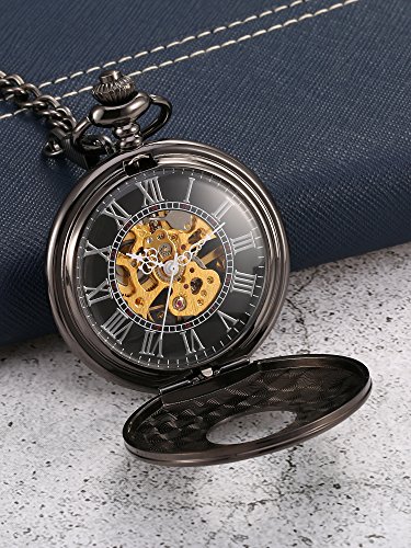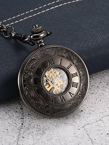 -. Title : Mudder Black Face Roman Numerals Mechanical Pocket Watch Birthday Wedding or Anniversary Men Gift
