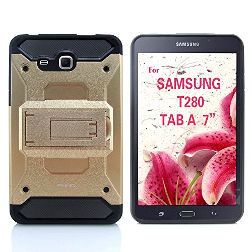 Galaxy Tab A 7.0 case 2016 T 280 [iRhino] TM GOLD Heavy Duty rugged impact Dual Layer Hybrid Case W Build In Kickstand For Samsung galaxy Tab A 7.0 inch 2016 T280 Tablet case cover