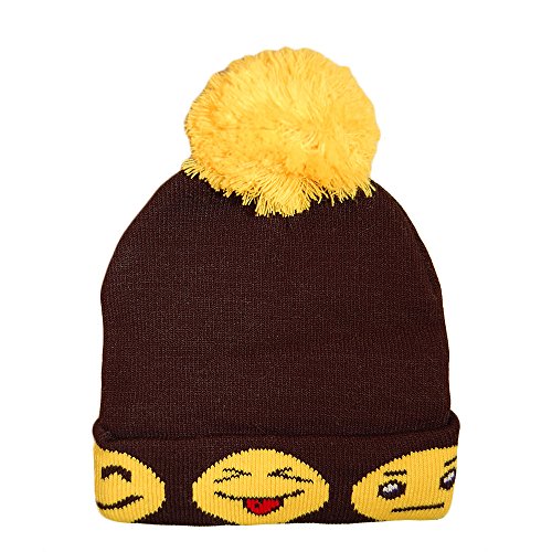 Pontique Unisex Emoji Pompom Beanie Hat Kids Adults, Funny Knit Winter Cap Black Yellow
