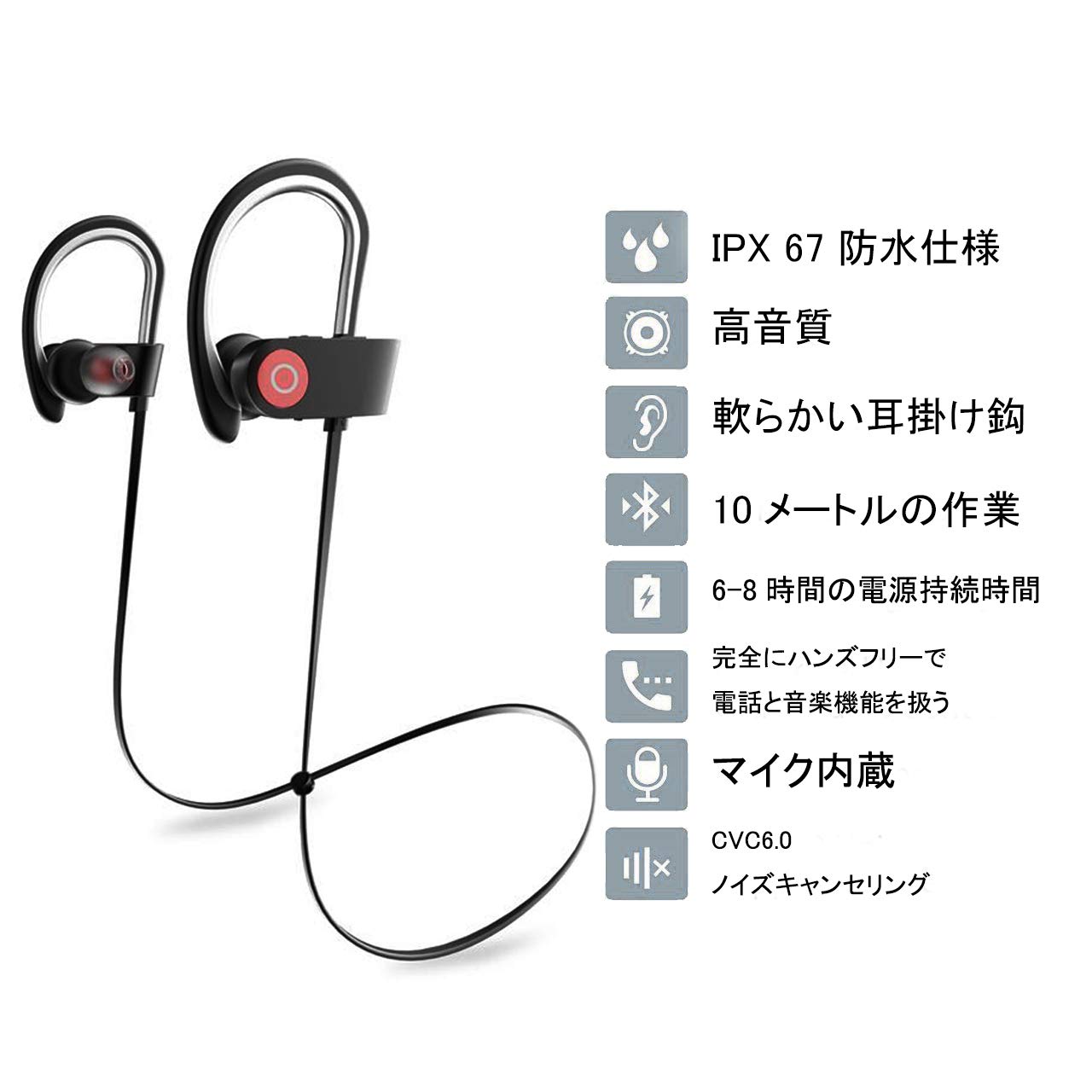 より強力になったBluetooth 4.2接続性能。 操作がとても簡単で、ケーブルからも解放され、完全の無線イヤホンを楽しめます。 クリアでリッチな高音質 :専門のオーディオエンジニアがチューニングしており、どの音域でもバランス良くクリアで高品質なサウンドを楽しめます。 お風呂で使える防水(IPX5) :汗や水しぶき、急な雨などからイヤホンを守る防水仕様 長時間使えるバッテリーのパワー。