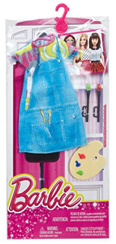 Try out a variety of careers with Barbie doll because she knows you can be anything! From the classroom to the stage, from arts to sports, Barbie doll’s career aspirations know no bounds. Future professionals can explore their own aspirations and many career possibilities with Barbie professional-themed outfits. Each look includes career-themed clothing with signature style and comes with iconic accessories to expand storytelling fun. The Barbie artist look is a masterpiece with denim-like jumper and paint-inspired shirt. A color palette and paintbrushes -- that fit on Barbie doll’s hands -- add to the career exploration and storytelling fun. Play out classic scenes or imagine new possibilities because with Barbie doll, you can be anything! Collect all of the Barbie doll career fashions to explore even more (each sold separately, subject to availability). Includes artist fashion with color palette and paintbrushes; doll sold separately. Fashions fit most Barbie dolls. Colors and decorations may vary.Feature