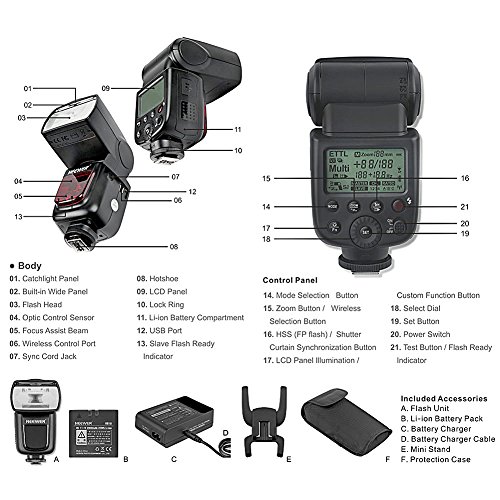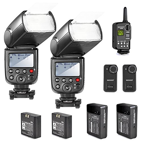- Feature : Powerful Flash with High Guide No.58(ISO 100, 105mm). Flash Modes includes TTL,Master,Slave, Off, M, Multi, S1, S2. High-speed sync up to 1/8000th of a second. Support HHS, FEC,FEB, FV Lock, Front & Rear Curtain Sync, Modeling Flash, Control with Camera's Menu Screen, etc. / Professional Lithium battery ultra-high capacity batteries- 2000mAh each : Faster, Longer and More Portable. / The Trigger & Receiver set is a must-have accessory for TT860 lithium powered portable flash. It transforms the Flash into a Wireless Flash with Remote Power Control. / AC Charger: This charger offers rapid charging, easy and reliable. Smart LED charging status indicator displys how many juice the battery has. Short circuit protection. / Kit Includes: (2)Neewer TT860 I-TTL Flashs for Nikon with Batteries and Chargers + (1)FT-16S 16 Channels Wireless Flash Trigger (Includes 1 x Transmitter and 2 x Receivers)