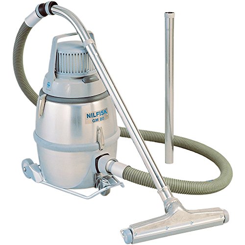 Nilfisk GM80 HEPA Vacuum, 110-120V, 3-1/4 Gal. - Lightweight and portable, the Nilfisk GM 80 Vacuum is a versatile machine providing the durability and performance required by dust control professionals, and can be used in both portable and stationary applications. It features a standard multi-stage filtration system with a paper dust bag, main filter, microfilter and HEPA exhaust filter. 3-1/4 gallon tank capacity; 2-1/4 gallon paper bag capacity. Includes 30' power cord. Vacuum operates at 110-120/220V, 1100 watts, 9 amps, with 102" waterlift and 87 cfm airflow. Dimensions: 14"L x 12"W x 16"H.Includes: 30' power cord, 32mm tapered plastic hose with curved plastic tube, 2 straight steel wands and five paper bags.Feature