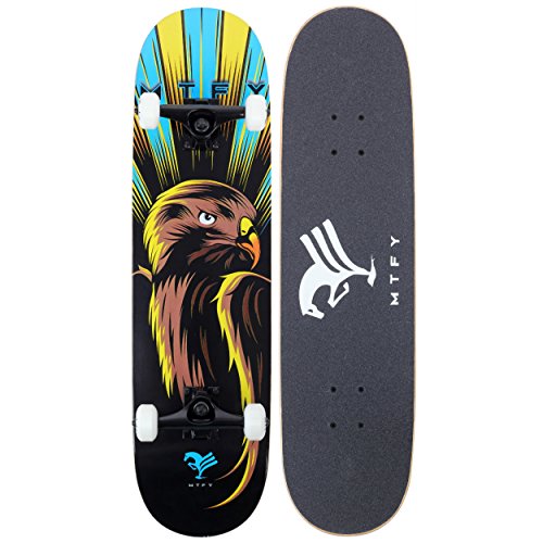 -. Feature : √ MATERIAL and DESIGN: Strong 7 ply 100% Canadian maple deck complete skateboard, the surface of deck is designed with attractive and amazing pattern P.R.Int that is heat transfer process, it is popular fashion accessory for teenagers and adults, skateboard can be often seen in some places, such as university, street, campuses and skate parks, YOU WILL LOVE IT / √ SKILL and GROUP: Perfect skateboard for beginners or experienced rider to do some basic stunts such 360's, OL action and a few other basic tricks, enjoy your street sport and show your superb skills, great gift for adults / children 5 years + / skateboard lovers / √ BEARING: ABEC-7 precision high speed stainless alloy bearings, 5 inch Seagull solid aluminum trucks with durable 100A Hardness PU wheels, fast and smoothly move / √ SURFACE OF BOARD: High density anti-skid waterproof emery, large friction, it is fixed with carbon steel kingpin, more steady and durable / √ STANDARD SIZE: 31" x 8", This skateboard is pre-assembly, easy to ride, Maximum weight capacity is 220 lbs