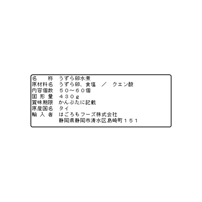 원본상품명: はごろも うずらの卵水煮(タイ産) 430g (2855)