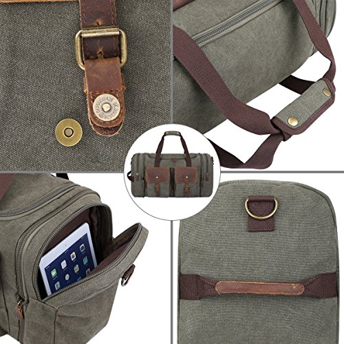 -. Title : S-ZONE Leather Overnight Duffle Bag Canvas Travel Tote Duffel Weekend Bag Lage