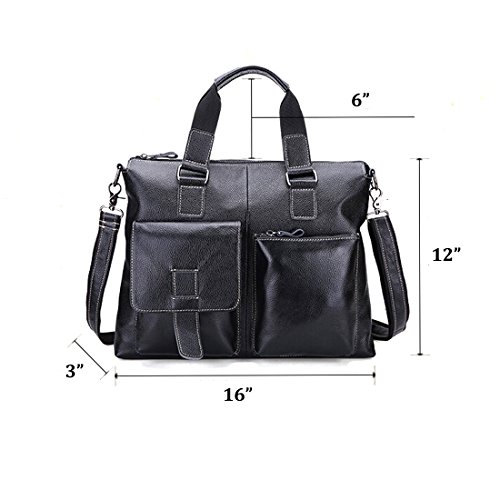-. Feature : Material: leather; Size:approx 16"X12"X3" / Removable and adjustable shoulder strap; wrapped bale handles / One zippered main compartment with 1 mobile phone holder, 1 document holder and 1 zippered inner pocket; 1 buckled front pocket, 1 zippered front pocket, and 1 zippered back pocket / Fit for holding wallet, laptop, books, umbrella, mobile phone, tablets and other belongings; multipurpose design for commuting, business trip, travel, leisure and shopping / Package includes: 1 SEALINF bag with 1 adjustable shoulder strap