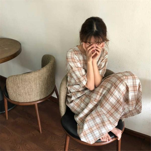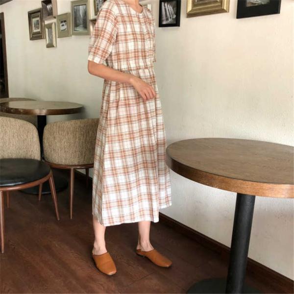 レトロ風チェックデザインのロングワンピース。