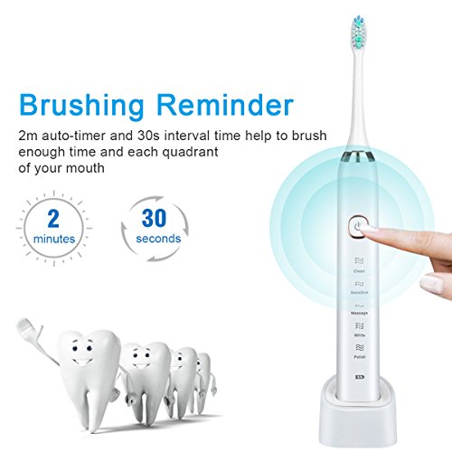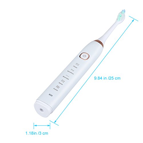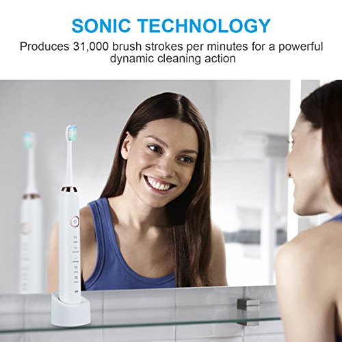 Ovonni Sonic Electric Toothbrush with 2 Replacement Heads, Rechargeable and IPX7 Waterproof Toothbrush with 5 Optional Modes and Travel Case White
