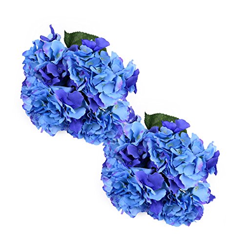 2 x Premium Silk Hydrangea Bouquets – 10 Large Artificial Fake Flower Heads for Your Home & Office Arrangements or Rustic Wedding Decor (Blue)
