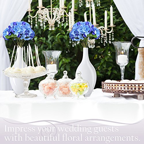 - ALWAYS IN SEASON: July or December, enjoy these premium silk flower heads in the comfort of your own home or as table centerpieces on your wedding day. You'll no longer have to worry about flower seasons, and we have all of your favorite hydrangeas in Blue, White, Purple, and Green.