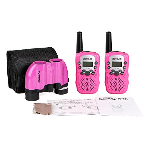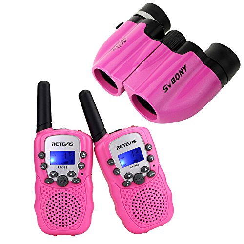 8x21 Mini Kinderfernglas und Retevis RT-388 8CH Kinder Walkie Talkies, schone Farbe und grundsolides Gehause ist eine perfekte Kombination fur Outdoor-Ausbildung, geeignet fur 3-8 Kinder