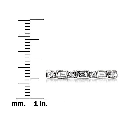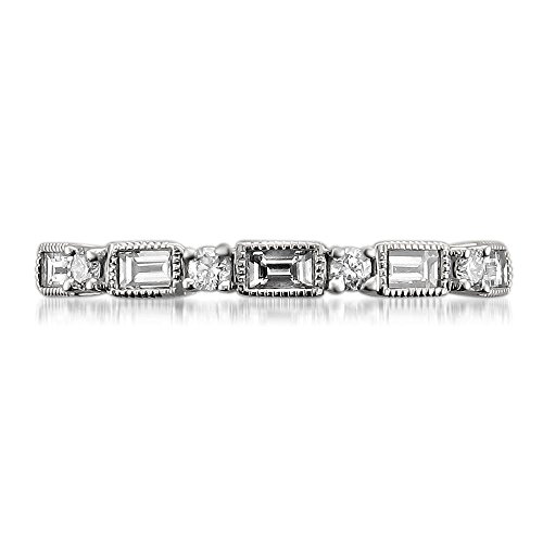 -. Title : 14k White Gold Baguette & Round Diamond Milgrain Bridal Wedding Band Ring (1/2 cttw, I-J, I1-I2)