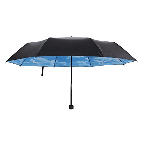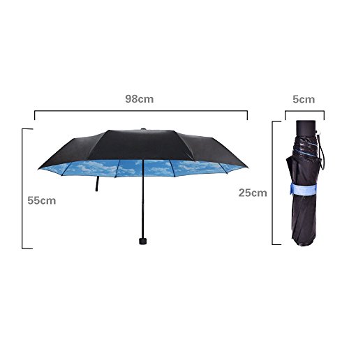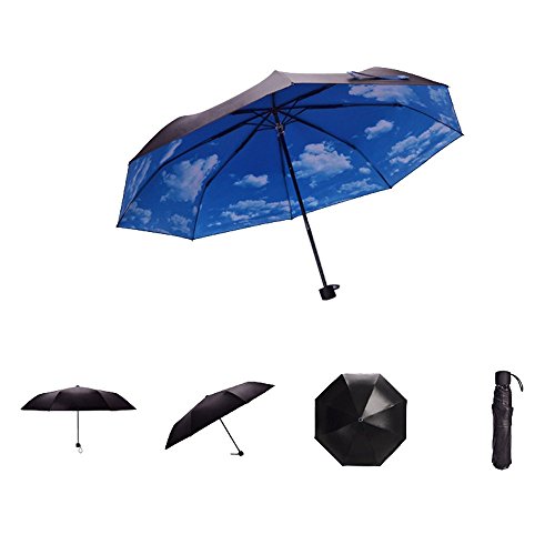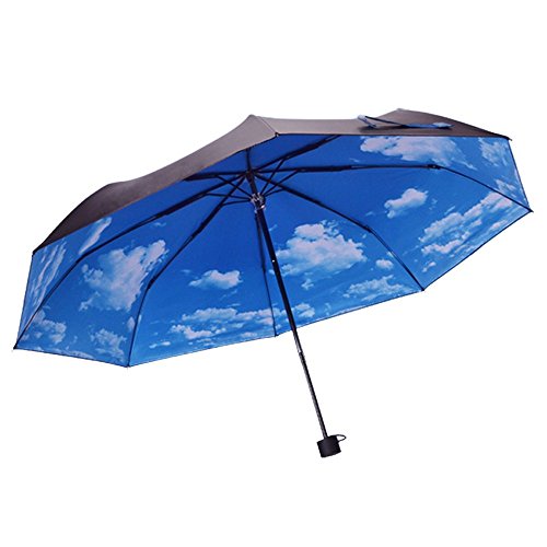 -. Title : LOHOME® Sun & Rain Umbrella, 99.9% UVA Block, Super Strong Sun & Wind Resistant 3 Folding Parasol with Blue Sky and White Clouds Picture for Travel