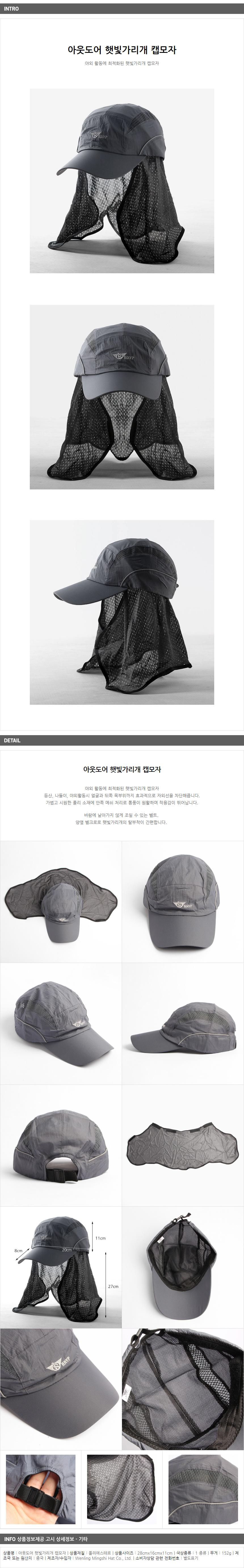 <상품명 : ZP8 아웃도어 햇빛가리개 캡모자>