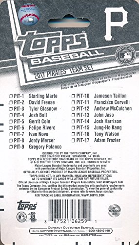 Pittsburgh Pirates 2017 Topps Baseball EXCLUSIVE Special Limited Edition 17 Card Complete Team Set with Starling Marte, Andrew McCutchen & Many More Stars & Rookies! Shipped in Bubble Mailer! WOWZZER!