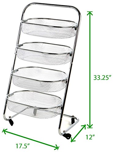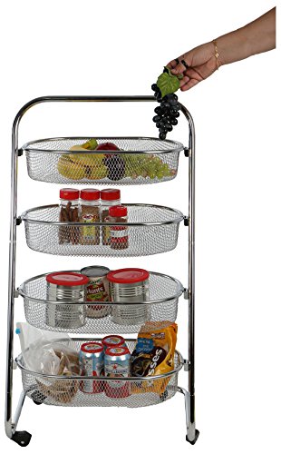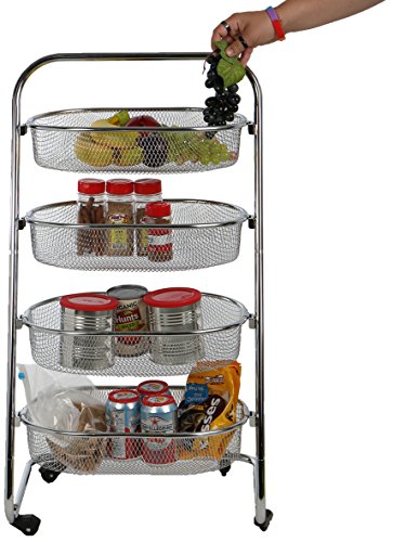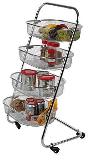 Mind Reader 4 Tier Rolling Basket Rack Kitchen Cart with Wheels, Silver