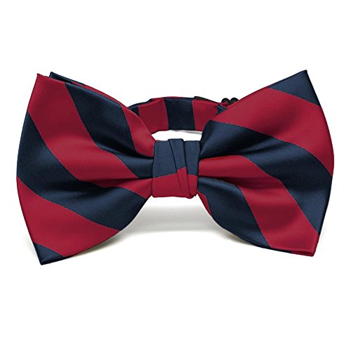 -. Title : TieMart Crimson Red and Navy Blue Striped Bow Tie