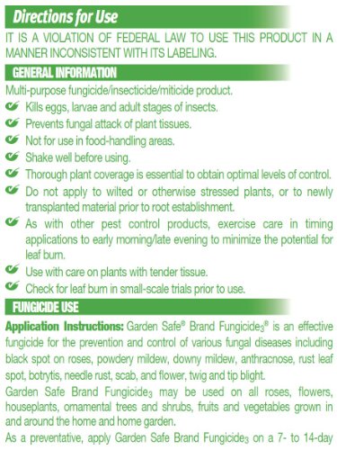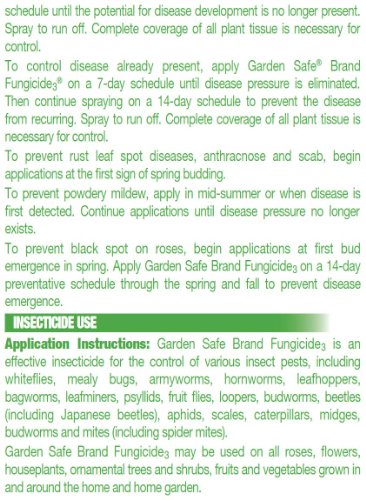 The Garden Safe Brand Fungicide3 is 3 products in 1. It kills all common garden pests, including insects, mites and fungus. You can use it on all garden plants, including roses, ornamentals, vegetables, fruit’s and house plants. It is a safe alternative to pest control for people who are concerned about using synthetic chemicals in their garden.Feature