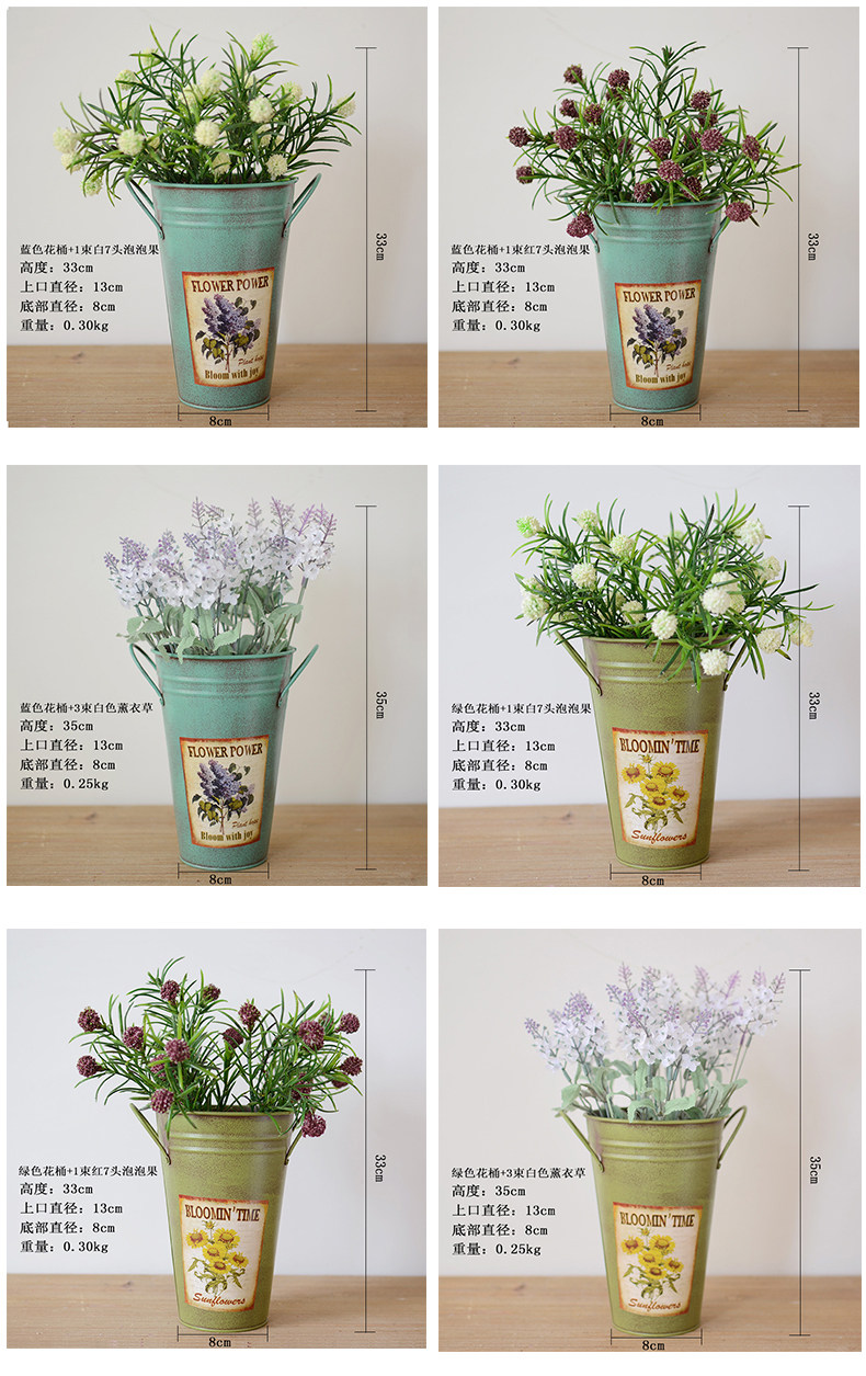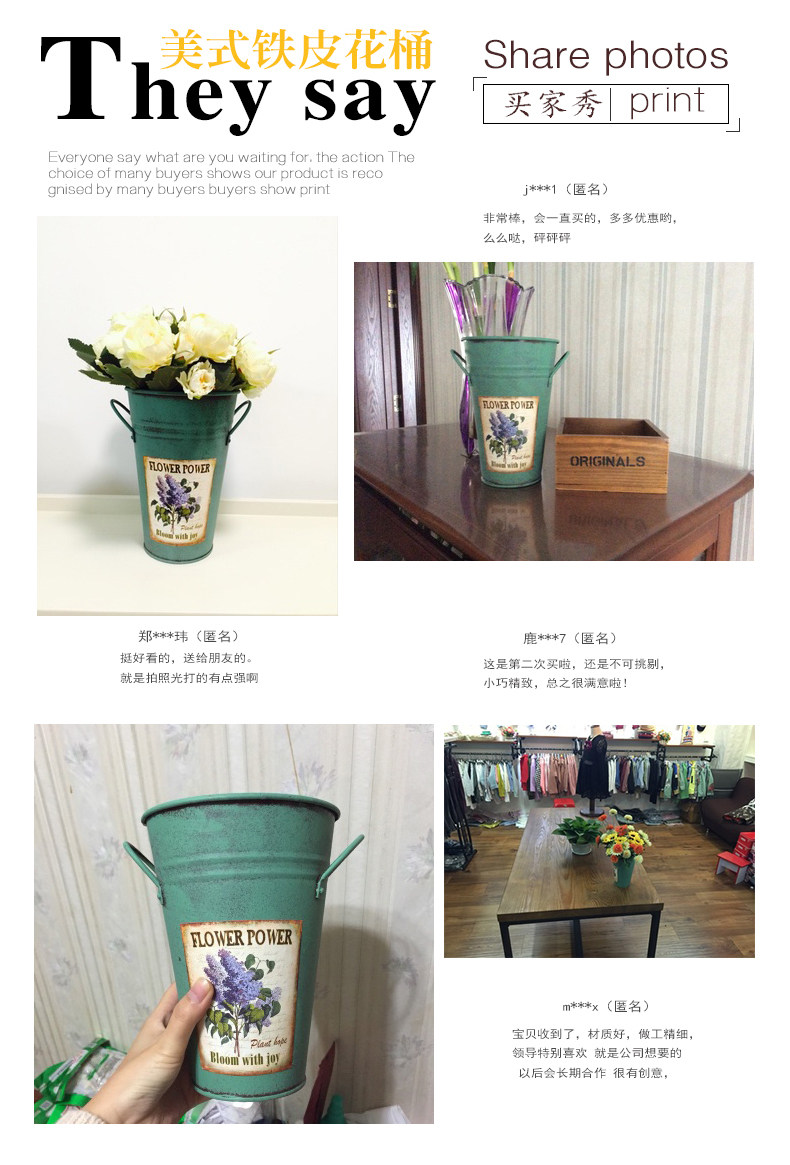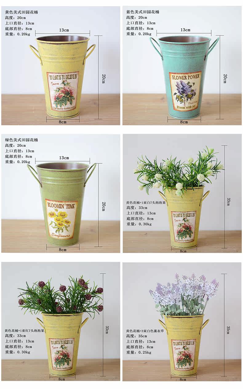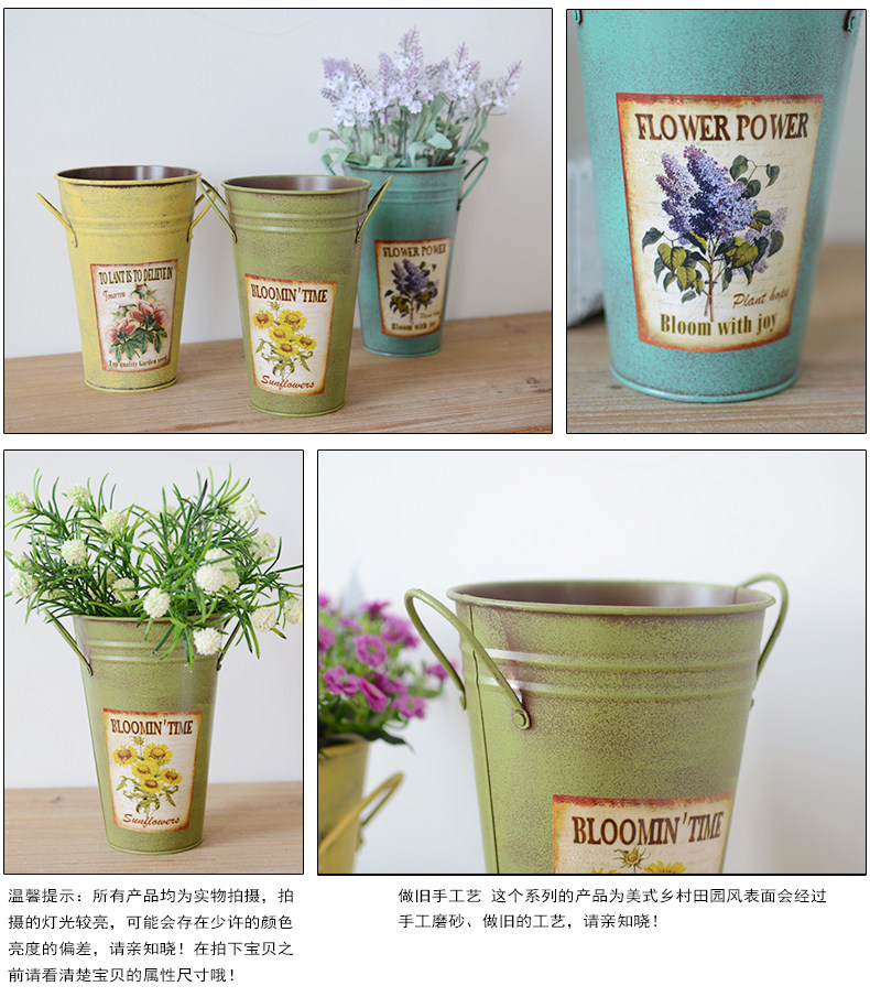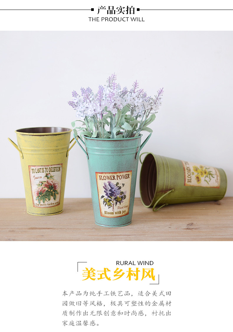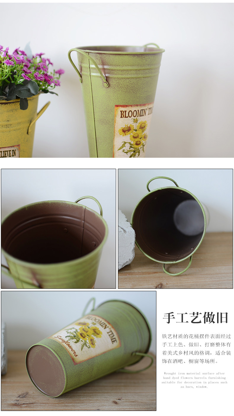 美式田园复古铁皮花桶花盆干花插花器小铁桶咖啡厅餐桌装饰桶摆件