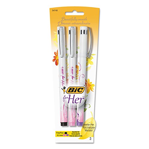 BIC for Her Marker Pen, 0.5 mm, Black/Pink/Purple, 3/Pack (BICFPFHP31AST)