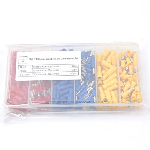 Ginsco 260pcs Insulated Female&Male Bullet Butt Connector wire Crimp Terminals Set Red Blue Yellow