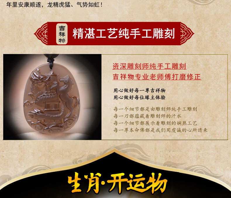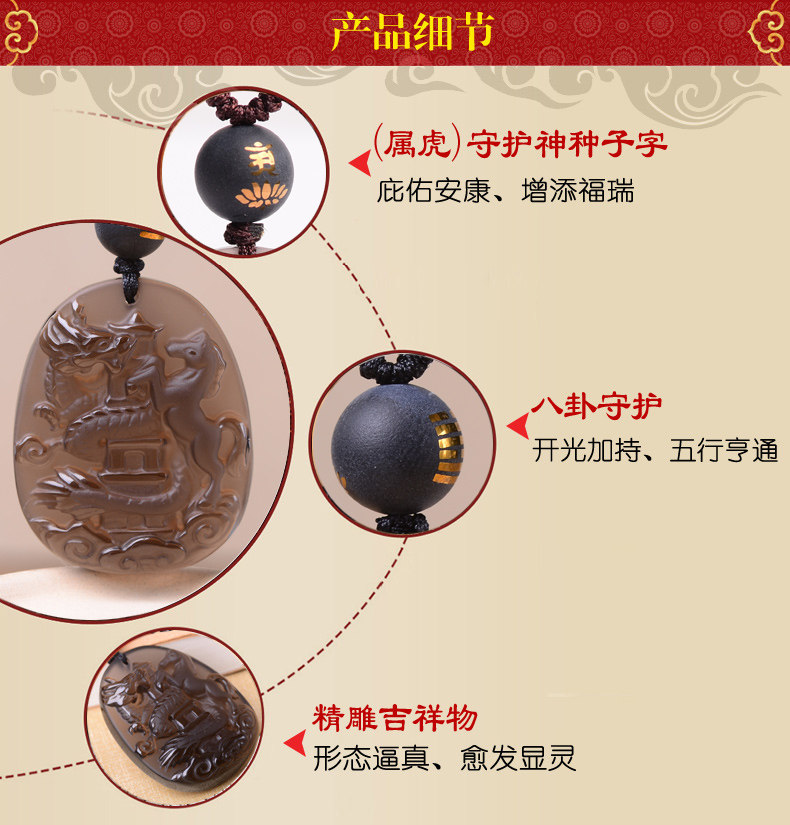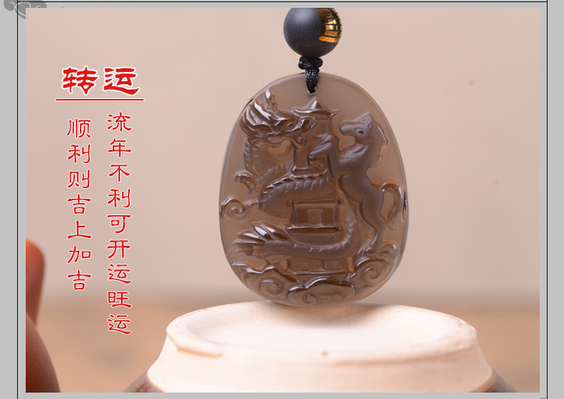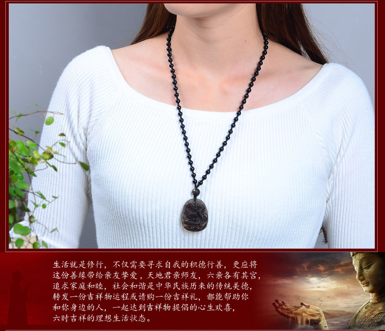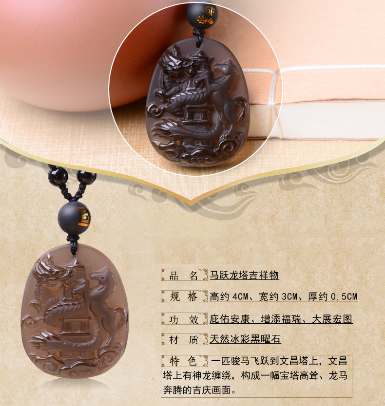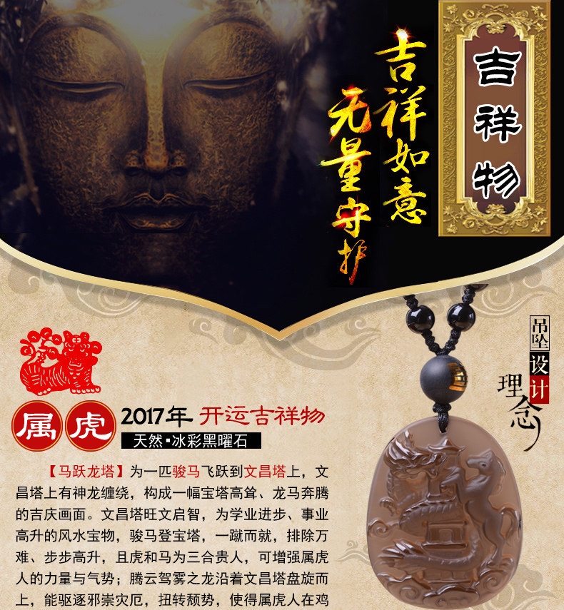 开光属虎人马跃龙塔黑曜石吊坠属虎鸡年吉祥物