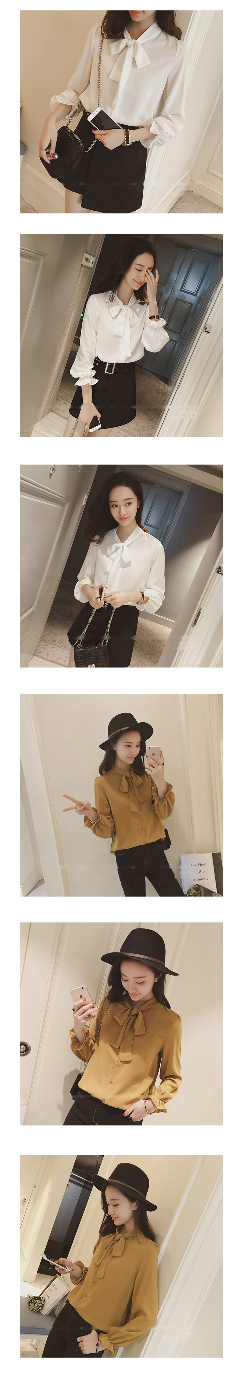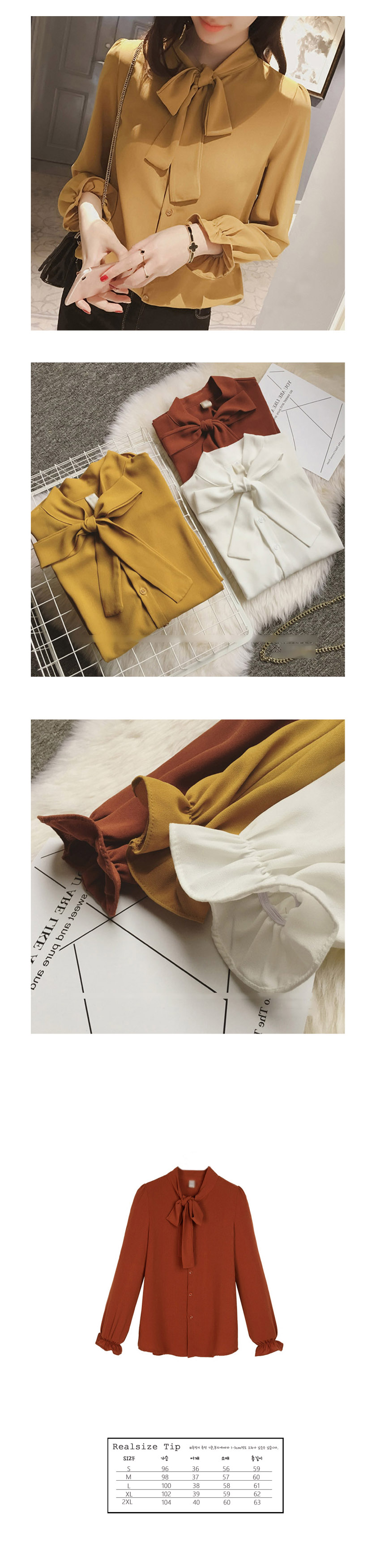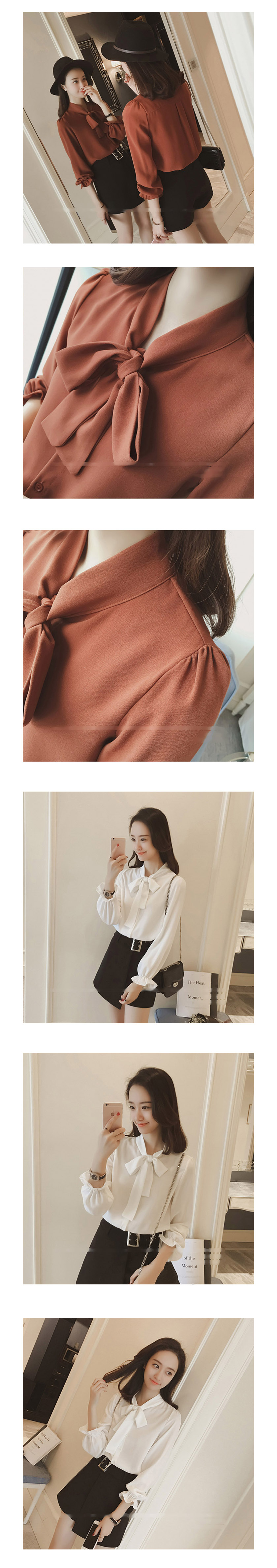 Direct import, autumn chiffon simple ribbon blouse S ~ 2XL modern look Lovely cute spring coordination