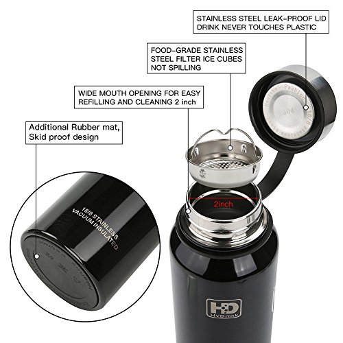 LOOKING FOR A BOTTLE TO CARRY ANYWHERE?This HvDrink double wall vacuum insulated bottle will meet all your needs! Whether you fill it with boiling water or a pack of ice, the bottle will never get hot or cold to carry! You can use at the office, the gym, or even for outdoor activities such as camping and hiking!