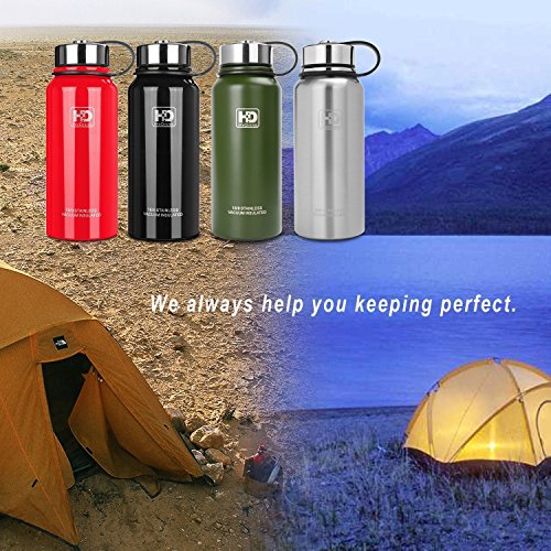 FUNCTIONAL DESIGN: The powder coat exterior finish is a classic. It assures that you stand out with a very durable and simple modern shape bottle. The wide-mouth opening makes this double walled vacuum insulated water bottle easier to fill up and clean. Fashion design let you carry it easily while camping, hiking, or doing any other outdoor sports. Offer colors: Black, Red, Army Green and Original Stainless Steel.