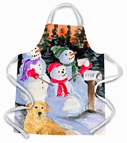 Caroline's Treasures SS8989APRON Snowman with Golden Retriever Apron, Large, Multicolor