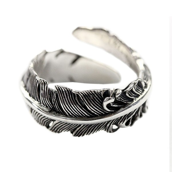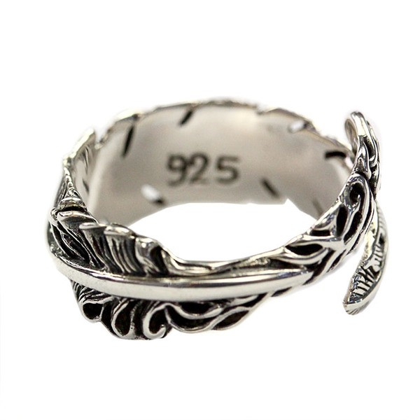 聖なる羽が指を覆うRoyal Jokerホーリープリュムリング。プリュムとは『羽』を意味します。神聖なる羽で指を覆いつける角度によって様々な雰囲気を醸し出す指輪です。インディアンアクセサリーのようなネイティブ感あふれるデザインになっています。本物のシルバーだから出せる質感が堪能できるアイテムです。専用のケースが無料で付属するので、プレゼント・ギフトにとってもオススメです。