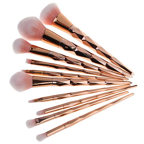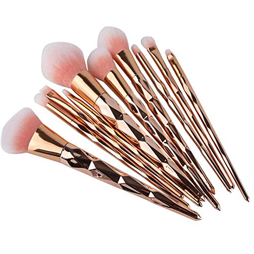 Coshine 10pcs Unicorn Shiny Gold Diamond Makeup Brush Set Professional Foundation Powder Cream Blush Brush Kits