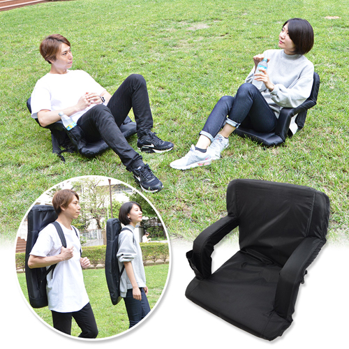 ●ピクニックやアウトドアにも使える背負える座椅子!柔らかいクッションやアームレストなど座り心地にもこだわっています。