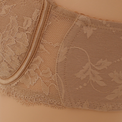 이 제품은 풀컵라인의 컵에 상변에 파워넷 원단을 덧댄 스타일로 디자인된 제품입니다. 컵상변 레이스 윗쪽으로 파워넷 원단을 덧대어 기존의 풀컵 제품보다 가슴을 더욱 감싸주도록 설계 되었습니 다. 플라워 패턴의 레이스와 시스루한 상변의 원단이 어우러 져 여성스러운 느낌을 나타내줍니다
