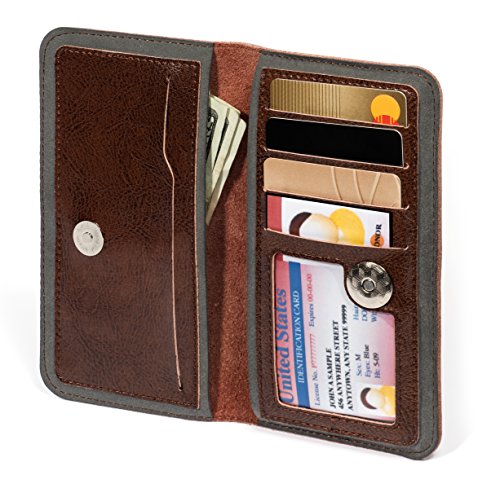 iPhone 6 Leather Wallet Case with Microfiber for Apple (iPhone 6/6s, 5/5S, 4/4S) and Android smartphones in size up to 4.7".