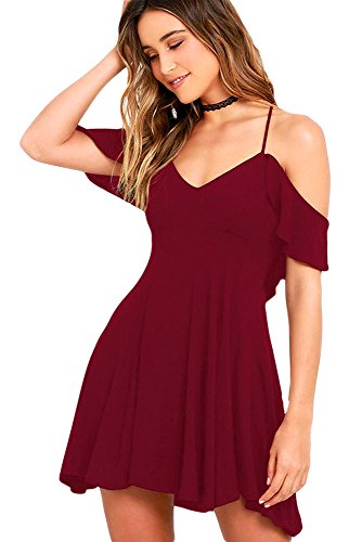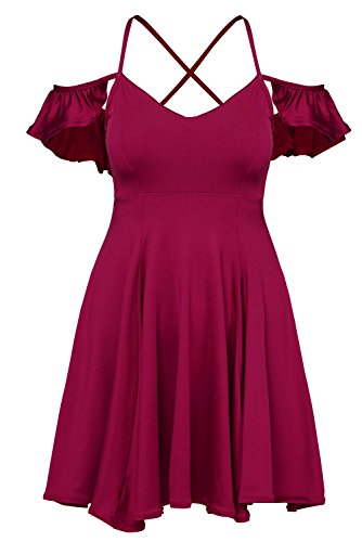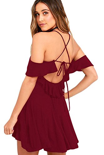 ♀♀"Women Ruffled Cut Out Cold Shoulder Backless Skater Dress Cold Shoulder/Ruffled /Skater Dress.It's fit well for most shapes and has a good slimming effect, feel adorable and alluring in this flared dress.♀♀Note: ★1.There maybe 1-2 cm deviation in different sizes, locations and stretch of fabrics. Size chart is for reference only, there may be a little difference with what you get.