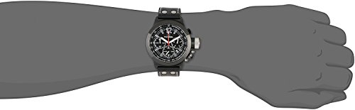 -. Feature : Quartz movement / Black chronograph dial / Black coated steel case black leather band / Mineral crystals / Water resistant to 330 feet (100 M): suitable for snorkeling, as well as swimming, but not diving