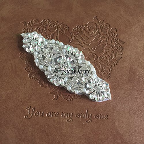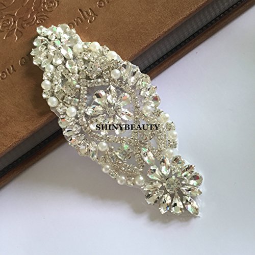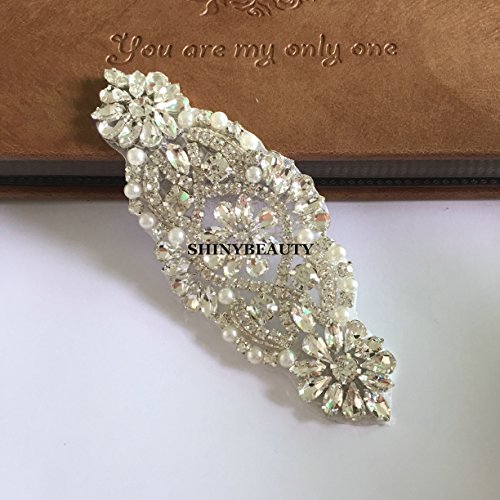 Crystal and pearl beaded applique for bridal sash, wedding headband, garters,wedding gown belt