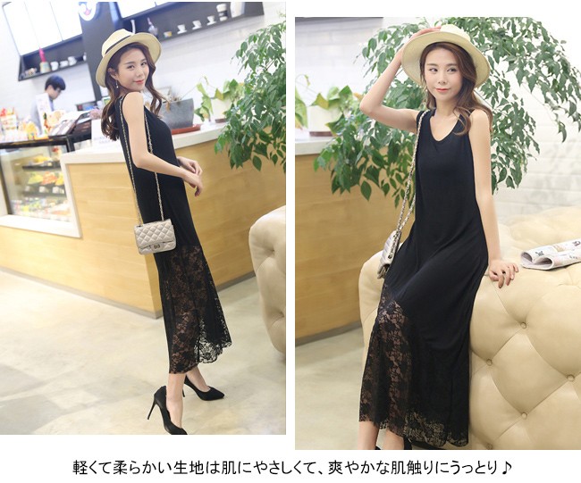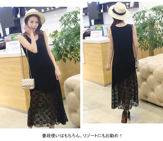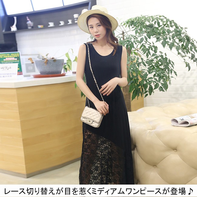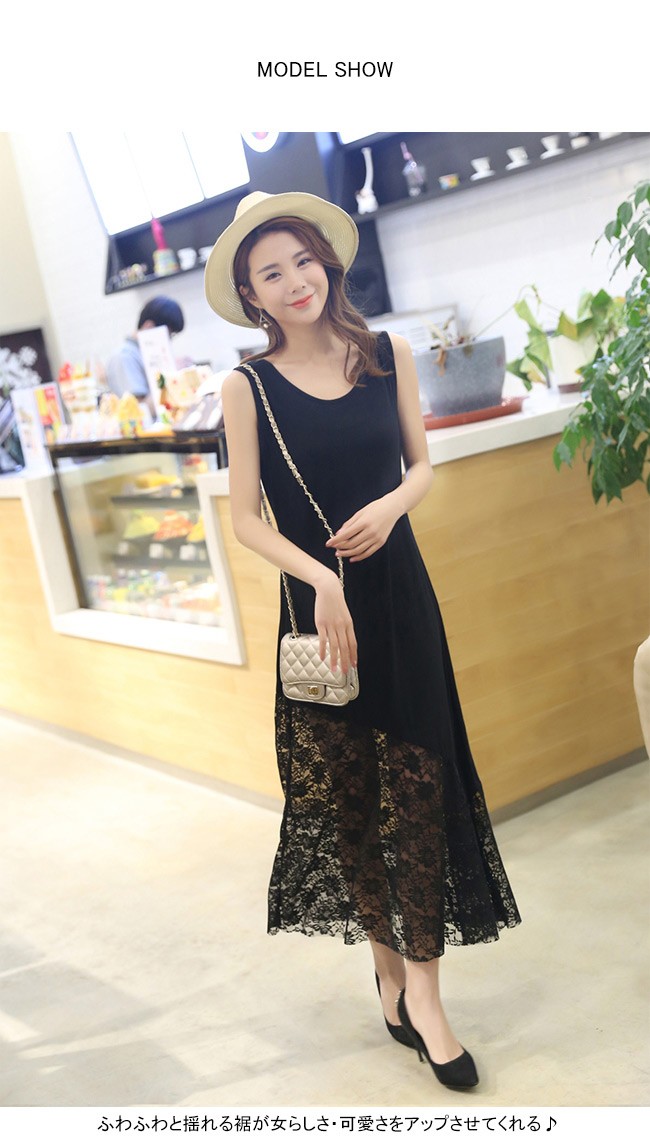 | 商品名 | ミディアムアンワンピ インナーワンピ レースワンピ レディース ノースリーブ 無地 Aライン 切り替え レース ミディアム丈 通勤 お呼ばれ 結婚式 夏新作 |