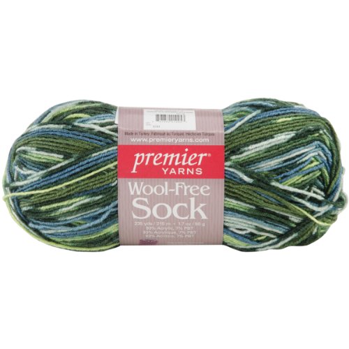 - New self striping colors! No scratchy wool? No problem! Wool Free Sock is a self-patterning acrylic-based sock plied with a strand of strengthening PBT which helps make your socks last! With deep saturated color and a fun-to-knit pattern printed right on the yarn, this soft-to-the-touch sock weight will add spring to the step in your socks!Yardage/Weight: 235.0 Yds./1.75 Oz.Materials: 93% Acrylic, 7% PBTKnitting Needles: 2Crochet Hooks: E-4Care Instructions: machine wash, tumble dry