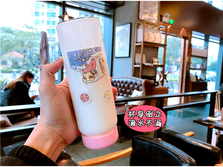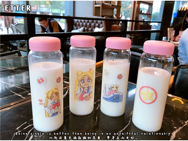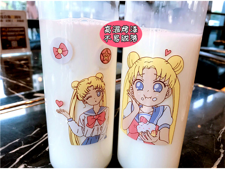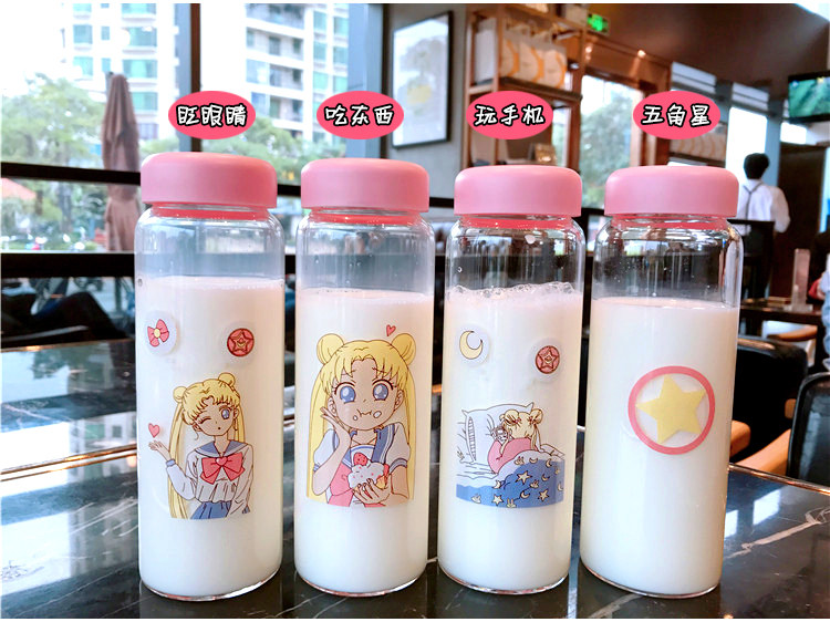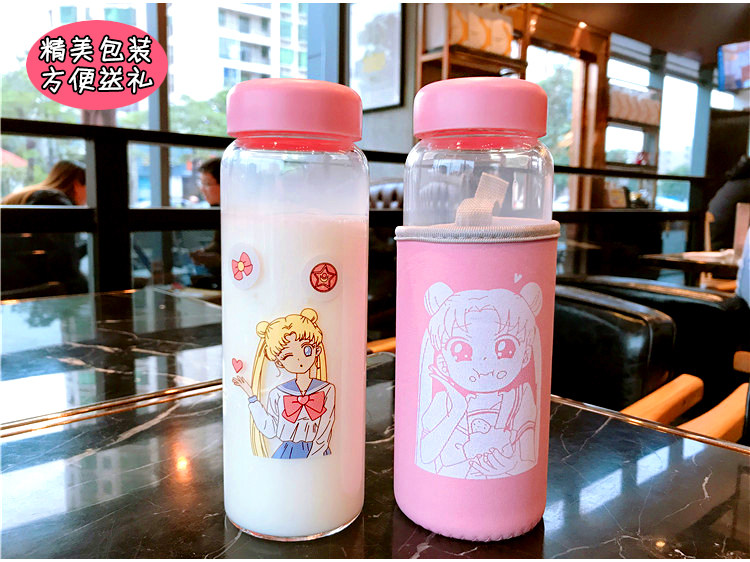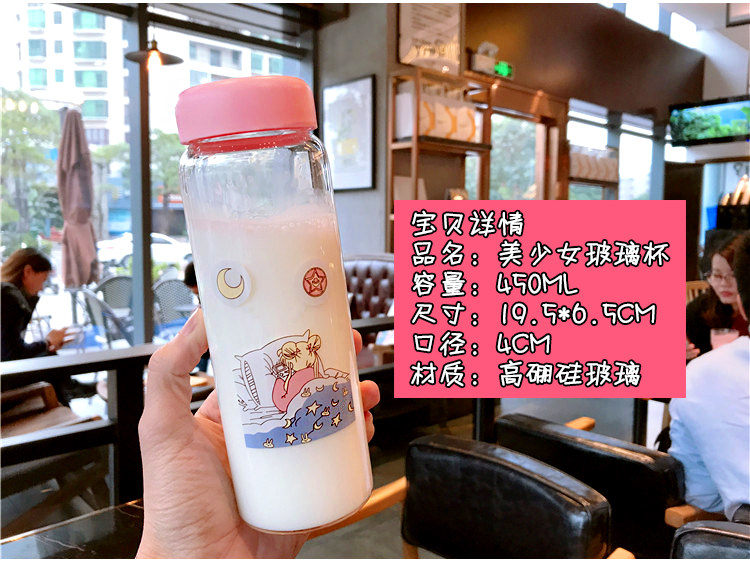 可爱卡通美少女战士玻璃水杯学生便携粉嫩少女心软妹超萌随手杯子