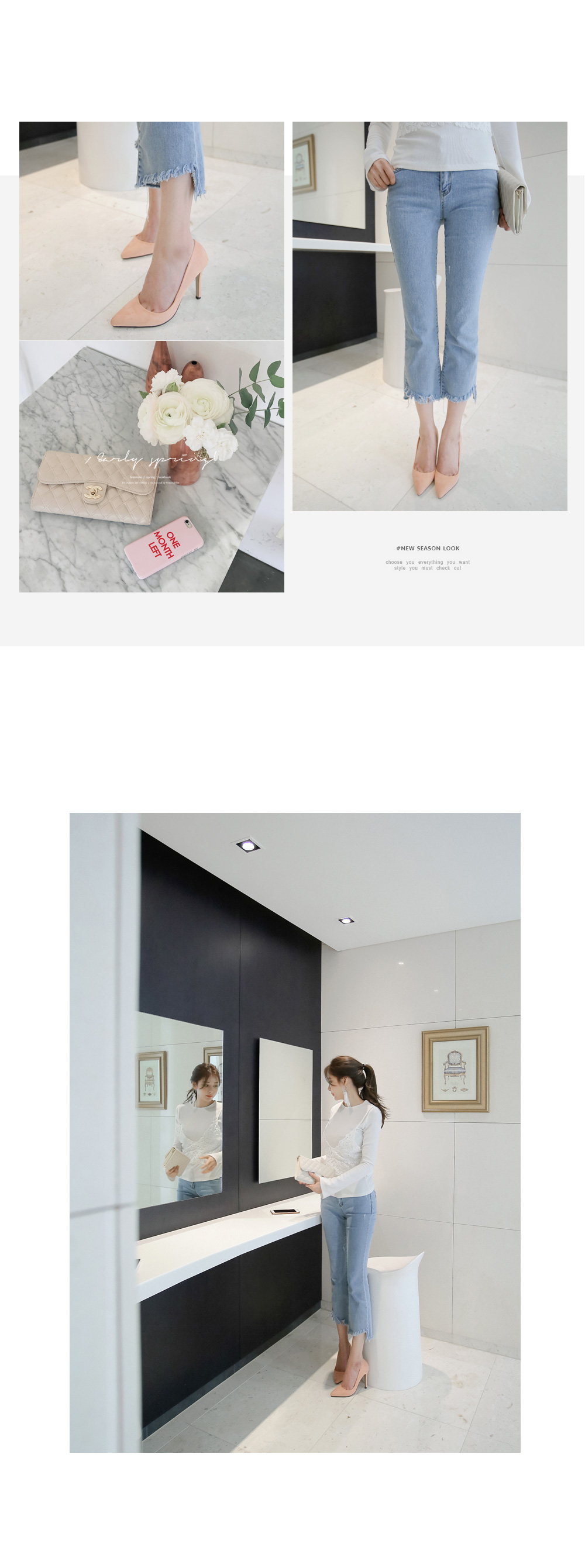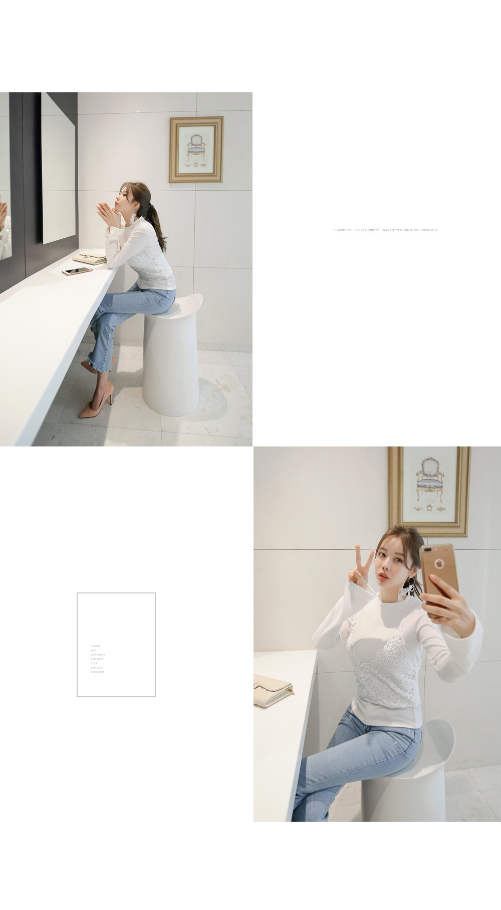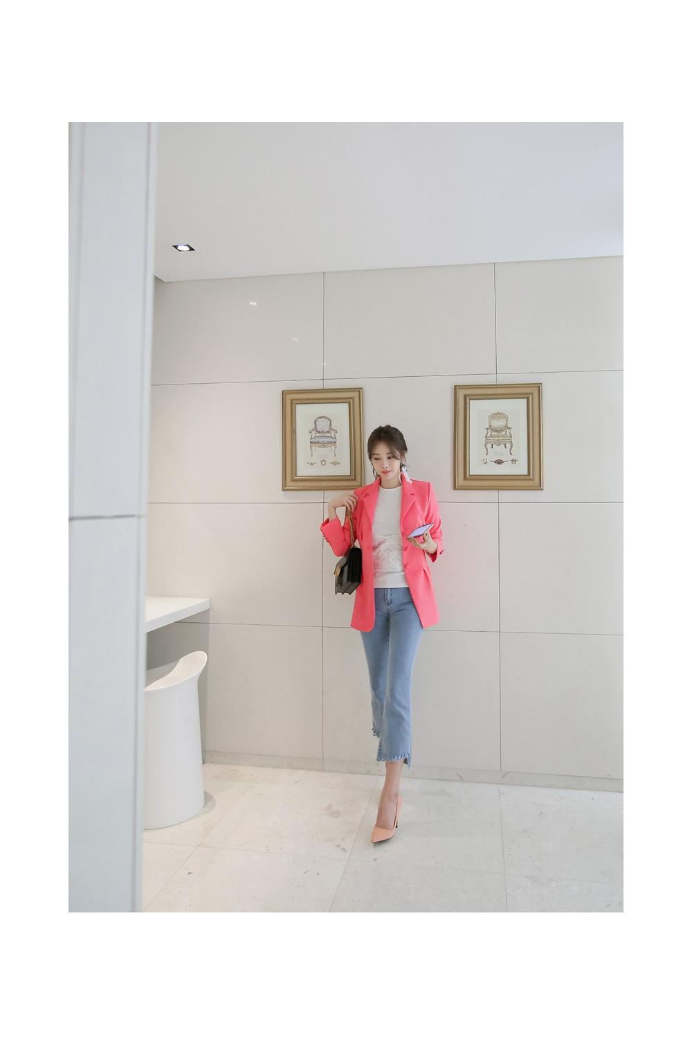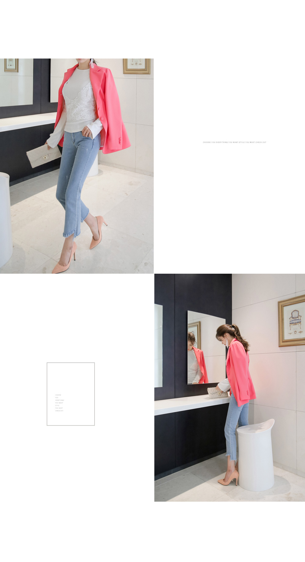 모델 처럼 팬츠와 함께 매칭하여 러블리한 룩으로