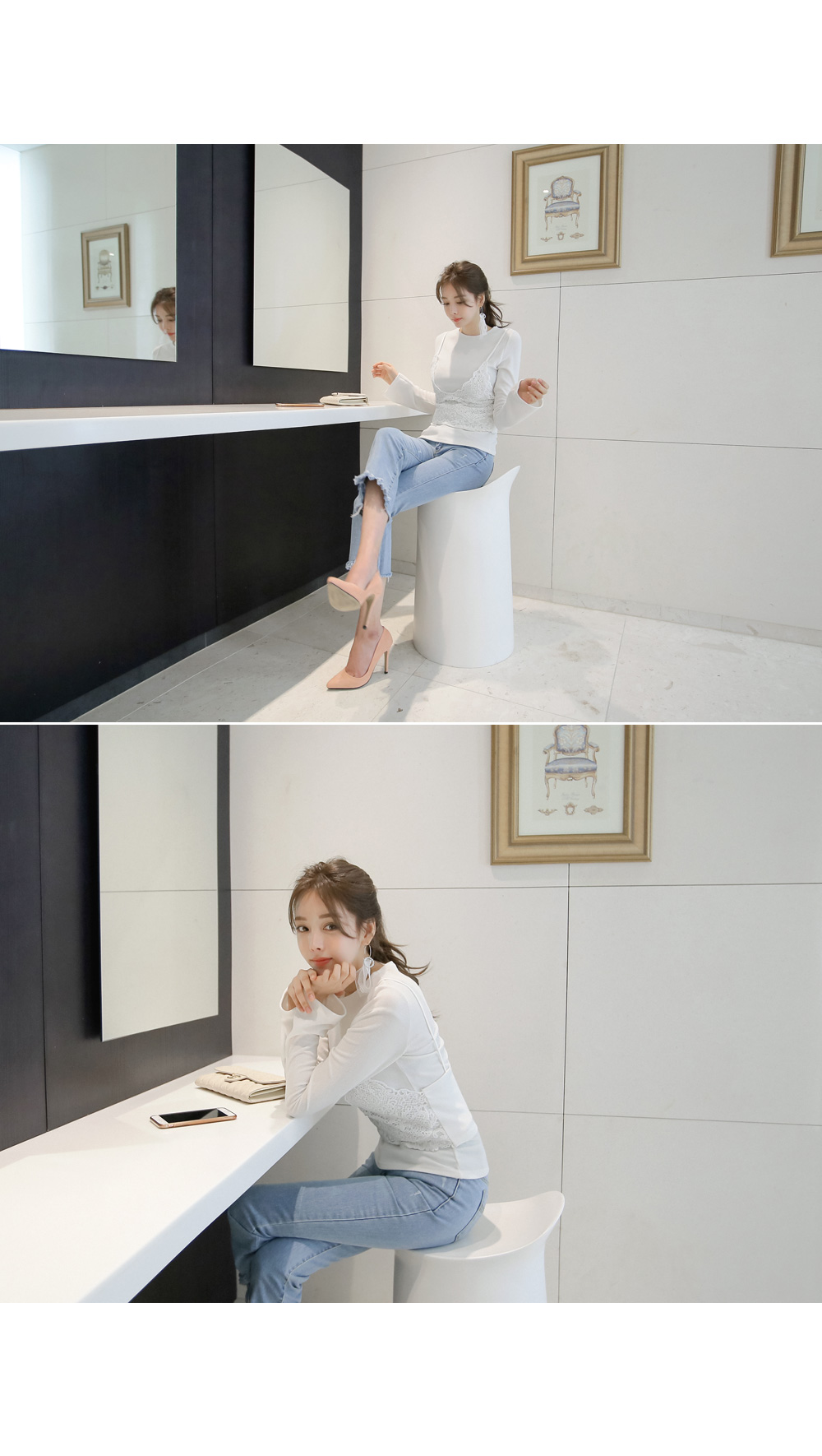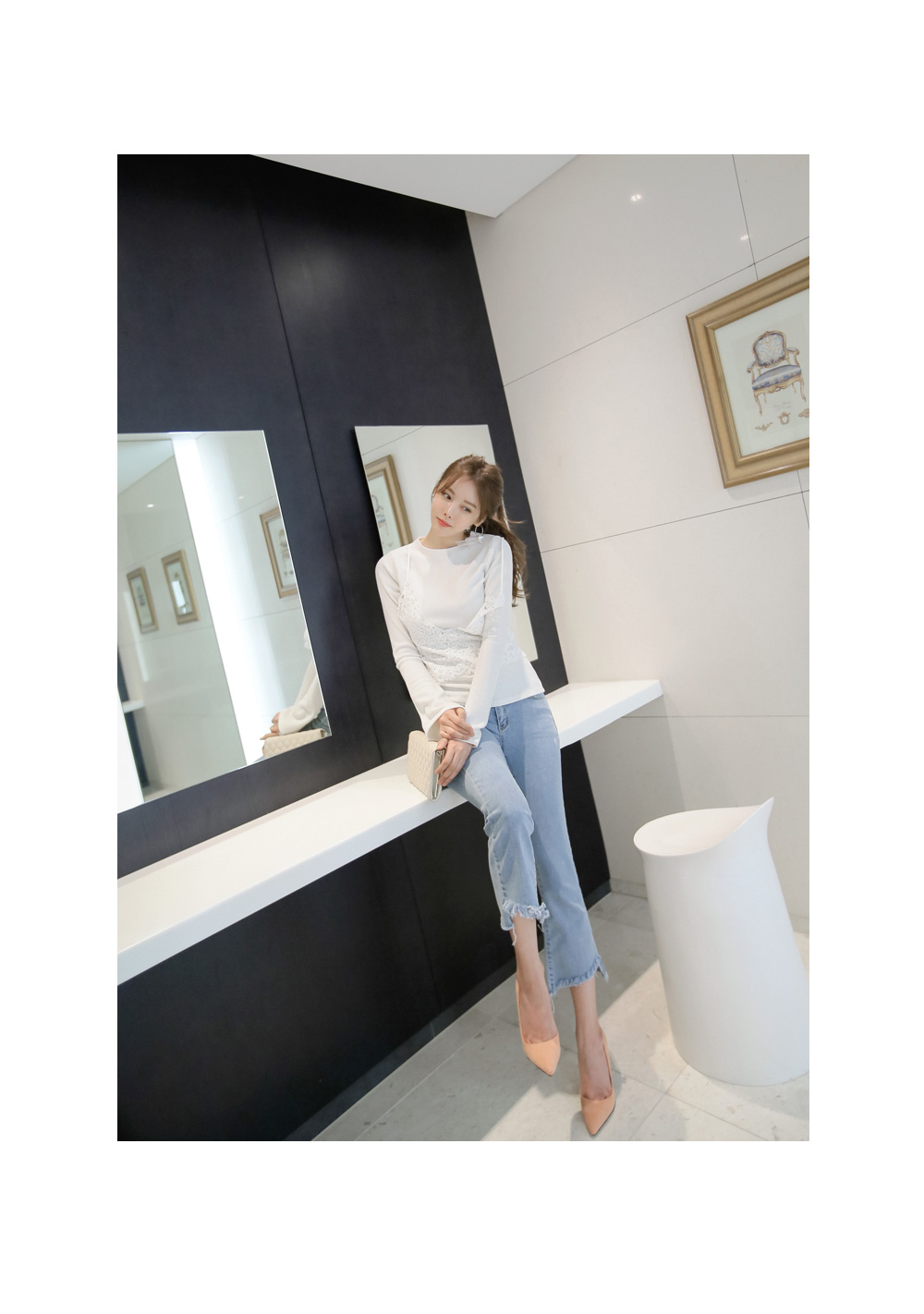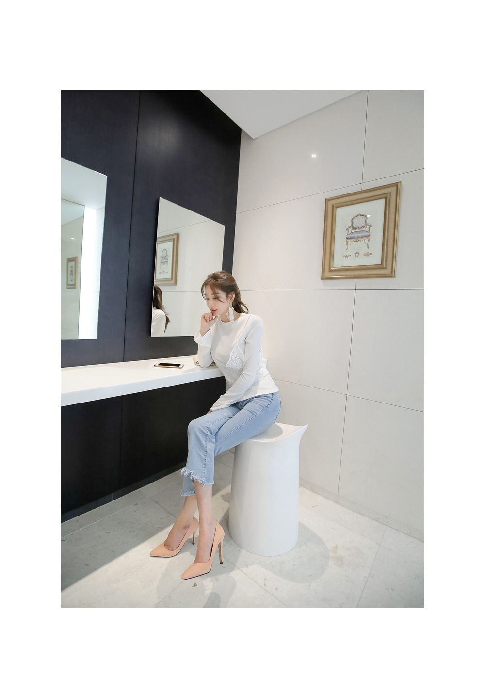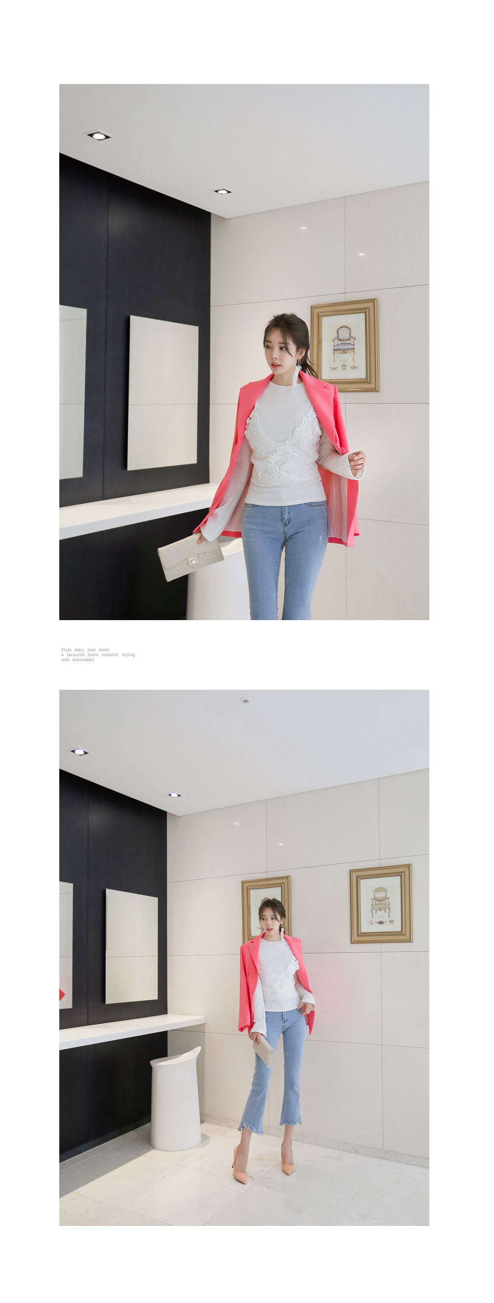 모델 처럼 팬츠와 함께 매칭하여 러블리한 룩으로