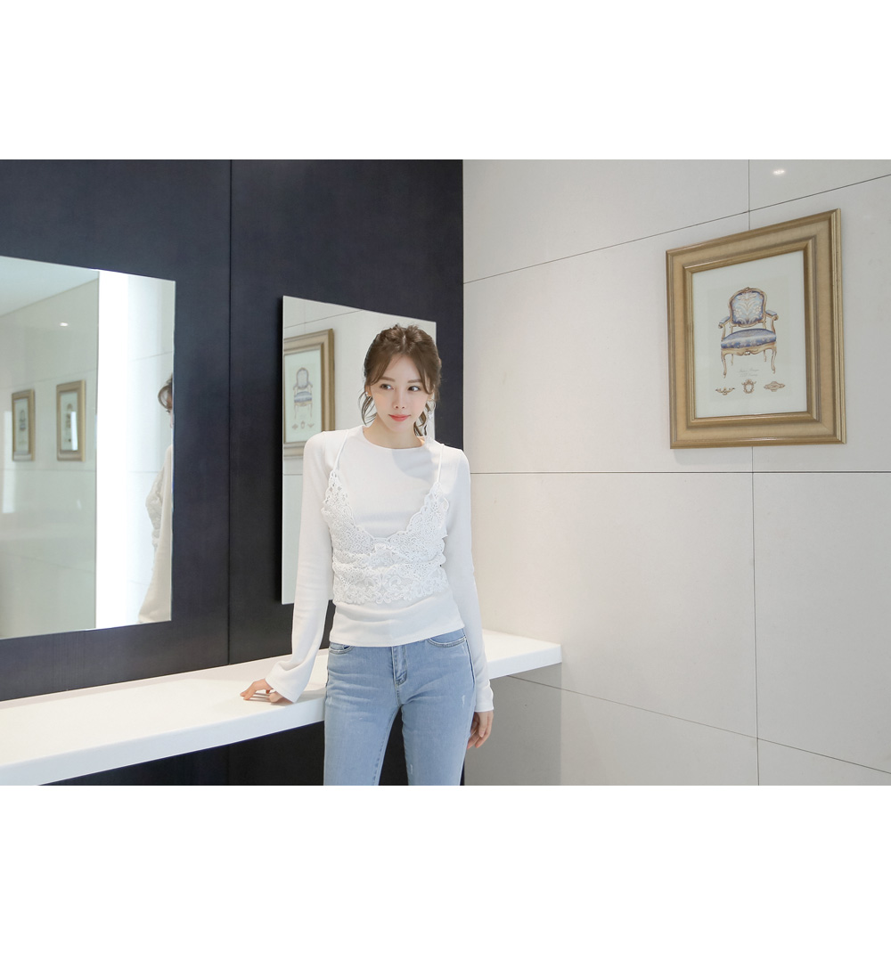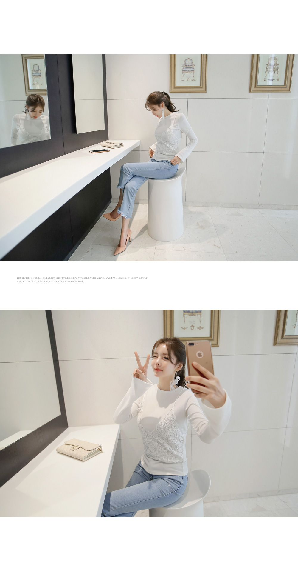 고급스러운 레이스 패턴의 뷔스티에가 레이어드 된 듯 세련된 디자인으로