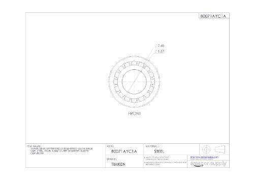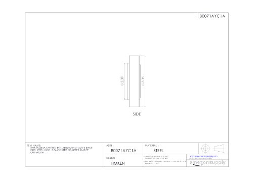 Timken 354A Tapered Roller Bearing Outer Race Cup, Steel, Inch, 3.346" Outer Diameter, 0.6875" Cup Width