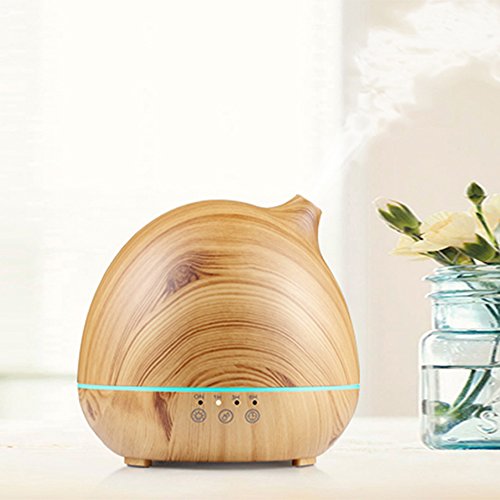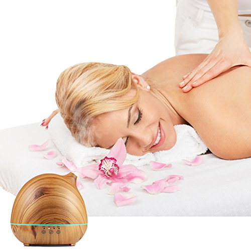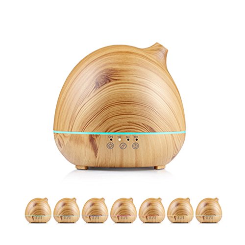 LANCI 400ml Essential oil diffuser, wood grain, ultrasonic aroma cool humidifier for office, home bedroom, baby room, yoga, spa, optional 7-color LED light, touchable screen adjustment time and fog