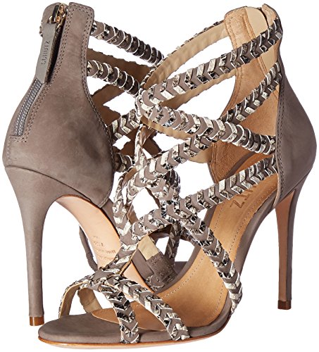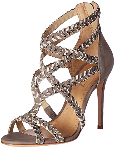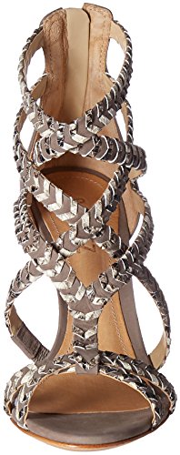 Product DescriptionHeeled open-toe sandal with back zipper detail and strappy snakeskin pattern0