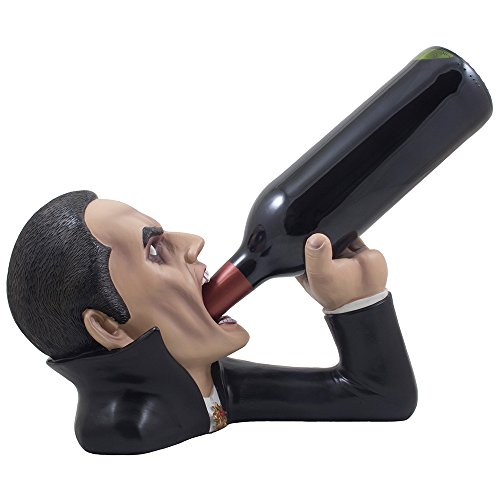 Spooky Count Dracula Vampire Wine Bottle Holder with Decorative Tabletop Display Rack Statue for Horror Movie Theater and Bar Decor or Scary Halloween Decorations As Creepy Gothic Gifts